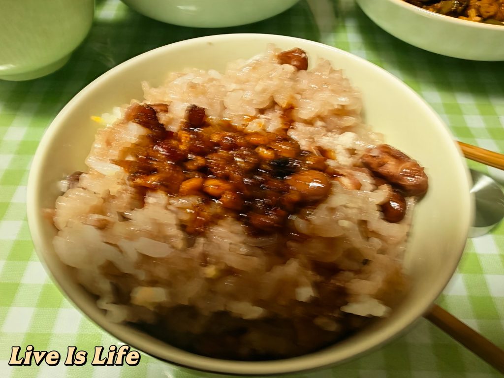 今天吃了黏米饭,挖个小坑,倒上油油的小肉酱,Nice。