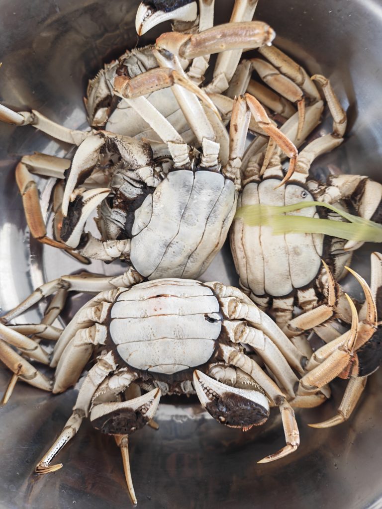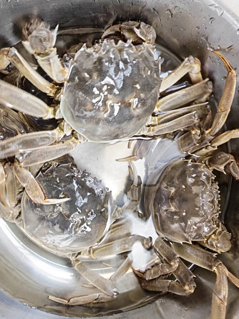 孩子要吃清蒸螃蟹,于是上午和妈逛了满克隆超市、超市对面的海鲜店还有红旗大市场。螃蟹的价格主要由个头来决定,我们要买的是一斤四个的,这种不大不小,吃起来刚刚好,89元一斤,也有的地方卖85,不过品质略差。在红旗市场的一家店挑了四只大的母蟹,结果超斤了,正好100。路上遇见一个同楼小朋友的奶奶也在买菜,人家只买了几个茄子和土豆,咱家的吃货在“吃”上确实比别家孩子费钱得多。那个小朋友就喜欢吃土豆,而咱家的五花八门,除了大众的豆角、茄子、鱼、苹果、香蕉不吃,猪肉、牛肉、火锅、烧烤、零食……只要费钱的都喜欢得紧,他奶奶也依他性,知声就会做给他吃。